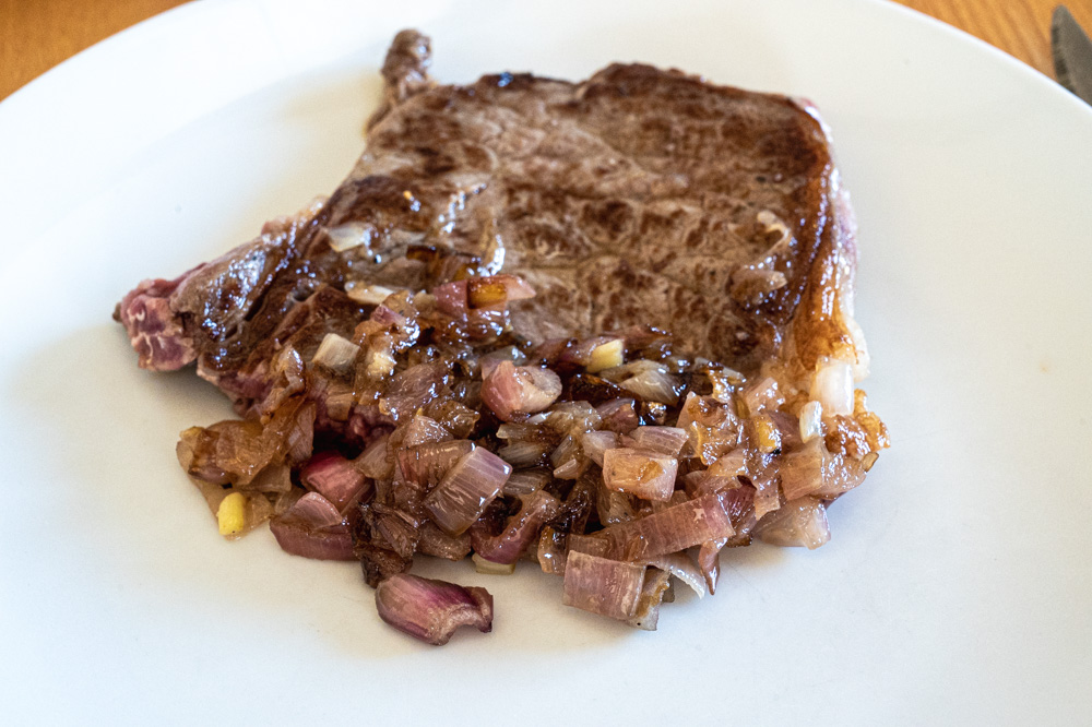 - samedi midi : soupe de butternut (un reste) ; entrecôte aux échalotes, spaghetti à la tomate ;