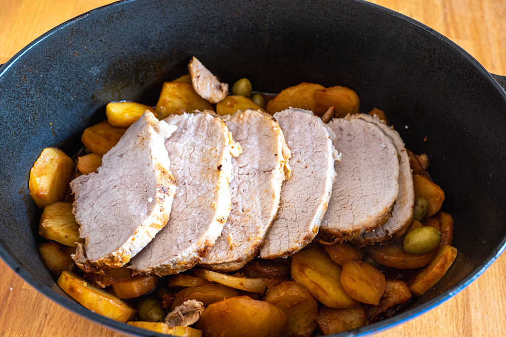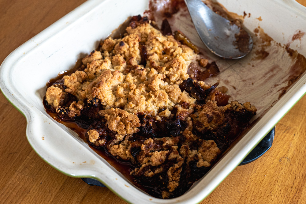 - dimanche midi : rôti de porc à l’andalouse (une recette vintage de La Bonne Cuisine Française), radis noir, chou romanesco ; crumble pomme-figue-prune