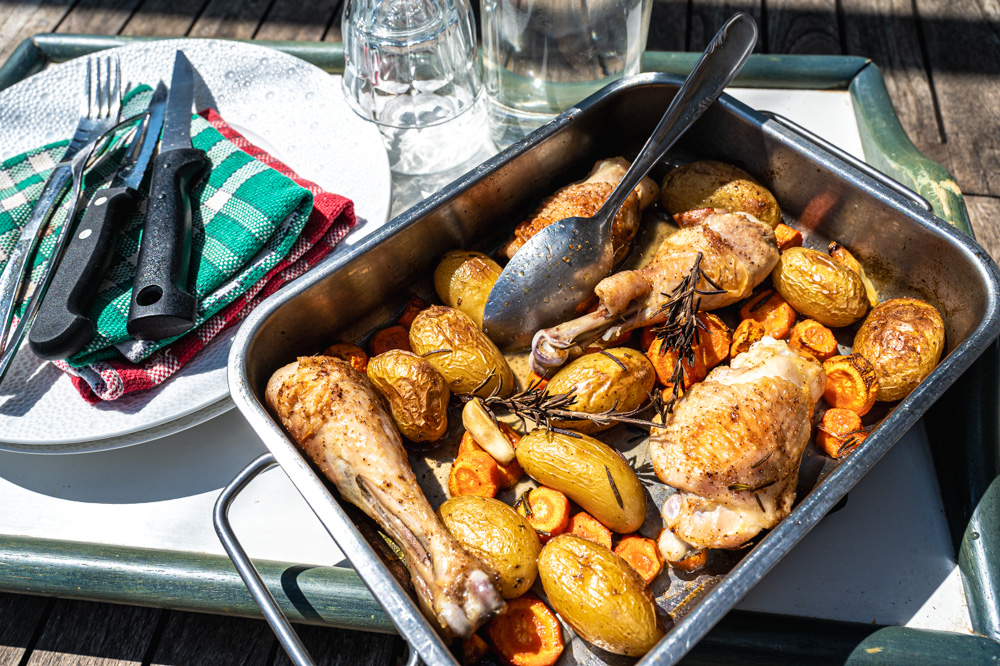 - dimanche midi : pattes de poulet au four pommes de terre, carottes ; glaces
